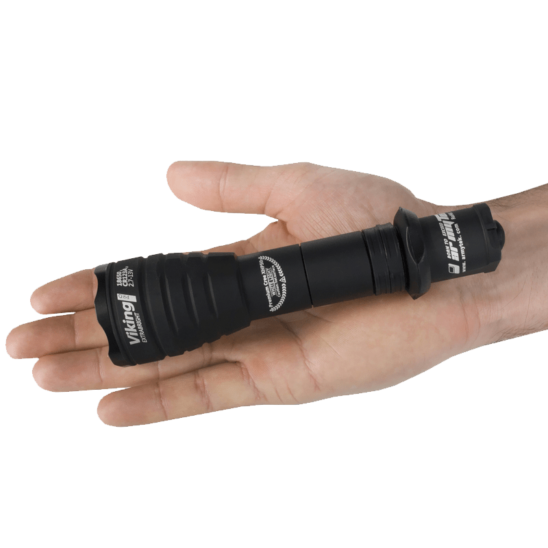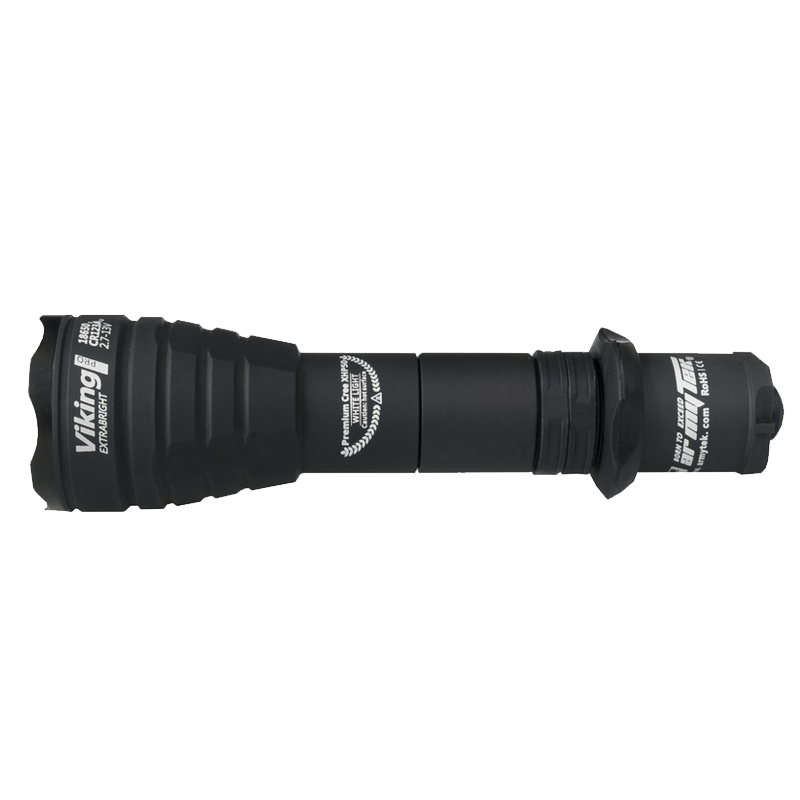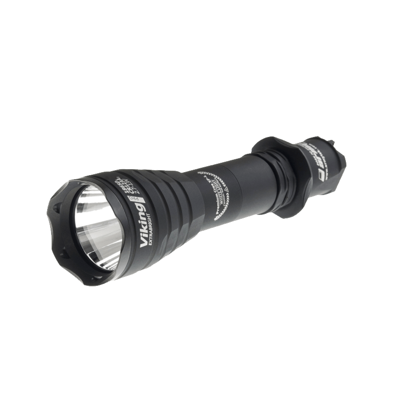 Armytek Viking Pro V3 är en ficklampa med medellång räckvidd. (286 meter) stort och jämnt synfält med rejäl prestanda, trots prestandan är den mycket liten och smidig vilket är en fördel när man förflyttar sig. Med en Armytek Viking Pro V3 får man en mycket stryktålig ficklampa som klarar fall från 30 meter, nedsänkning till 50 meters vattendjup i mer än 5 timmar och dessutom 10 års garanti från kanadensiska Armytek! Armytek Viking Pro V3 är en extremt stryktålig och pålitlig lampa som är utmärkt vid eftersök och då vapenmonterad i ett vapenfäste. Den går att utrusta med Armyteks fjärrbrytare så att man kan tända ficklampan på framkolven.