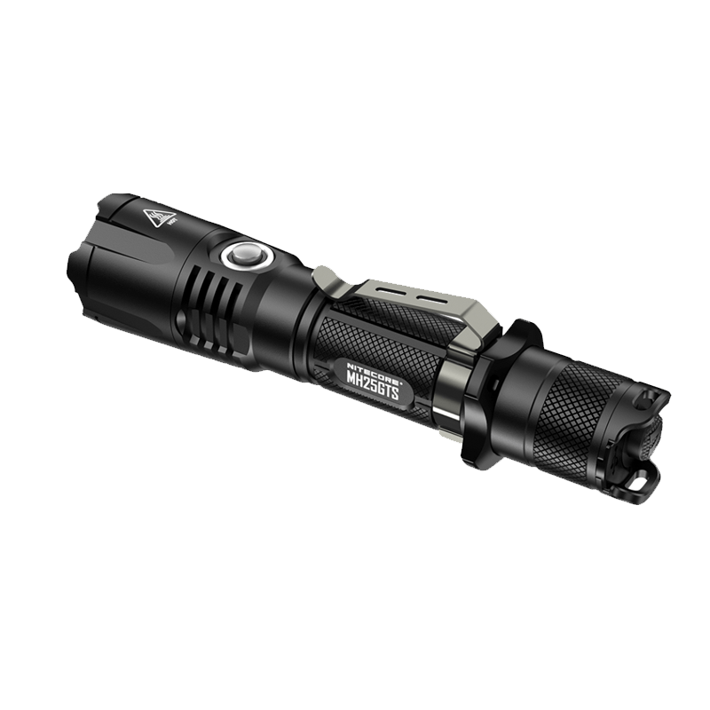 Nitecore MH25GTS är en högpresterande ficklampa ur Multitask-Hybrid serien med en räckvidd på 304 meter. Ficklampan har inbyggd laddningsregulator och laddas via USB-port. Nitecore MH25GTS har en avancerad temperaturövervakning som skyddar ficklampan mot överhettning (ATR) beroende på omgivande miljön i kombination med värmen som dioden alstrar. Nitecore MH25GTS drivs av ett medföljande Nitecore 18650 batteri (NL1835HP, 3500mAh High Performance) eller två stycken CR123. Ficklampan är IPX8 klassad vilket gör den vattentät till 2 meters djup och den är dessutom fallskyddad till 1 meters fallhöjd. Nitecore MH25GTS har en taktisk strömbrytare i bakstycket på ficklampan samt en strömbytare på sidan av ficklampan som skiftar mellan olika ljuslägen och driftslägen.