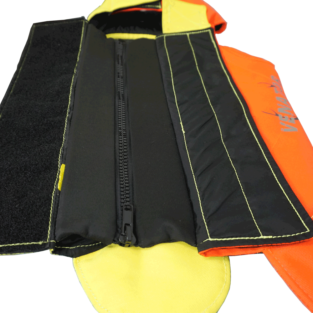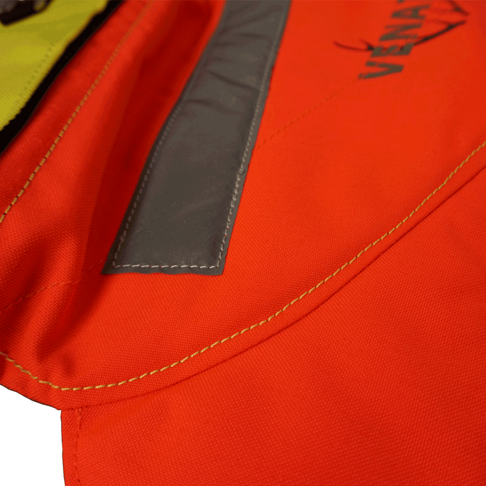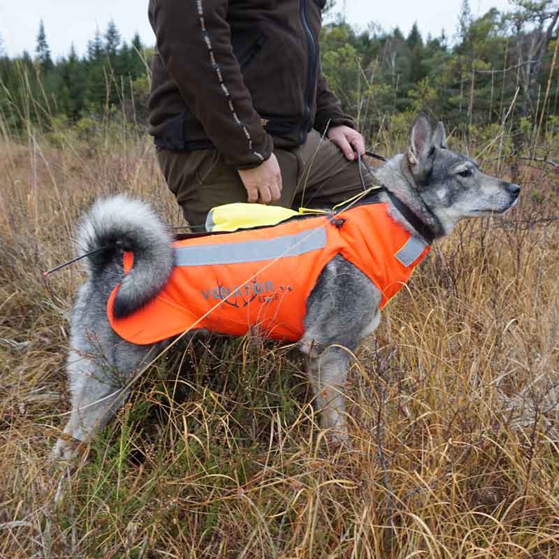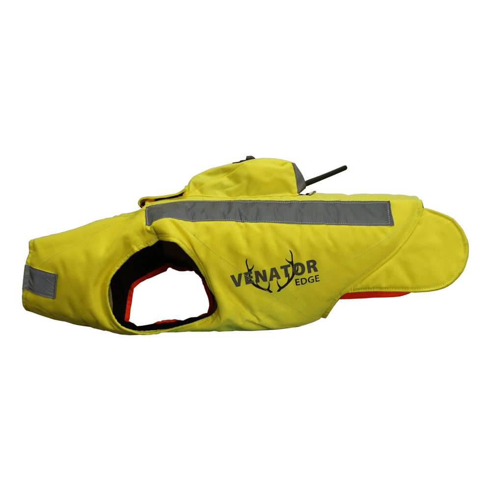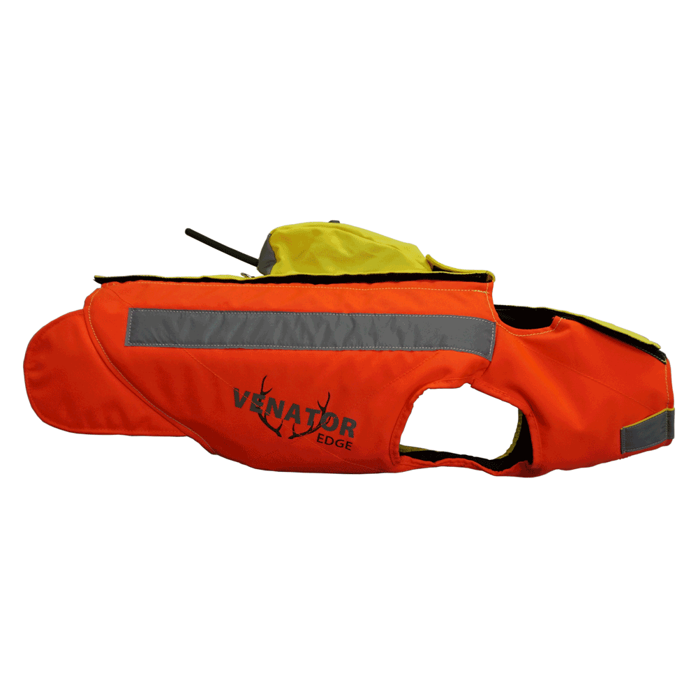 En jakthund är en ovärderlig familjemedlem och jaktkamrat, med vildsvinens kraftiga ökning så blir behovet av skydd för hundar större än någonsin. Skyddsvästen från Venator Edge har en mycket bra passform som ger maximal rörlighet och samtidigt ett mycket bra skydd mot vassa betar. Venator Edge skyddsvästen har en ny avancerad 6-lagersteknik med ett mycket kraftigt yttertyg i 1050D Nylonväv, under ytterlagret finns hela 4 skyddslager med ett extremt tåligt material (UHMWPE) samt ett komfortlager närmast hunden som ger ett mjukt och bekvämt skal närmast hunden. Skyddsvästen har två olika färger som ger hundförare av ställande hundar en fördel i tät vegetation där man ser färgen och vet vilket håll hunden ställer åt. Alla viktiga sömmar är dubbla och med förstärkt tråd för att ge en lång livslängs även i tuffa miljöer.