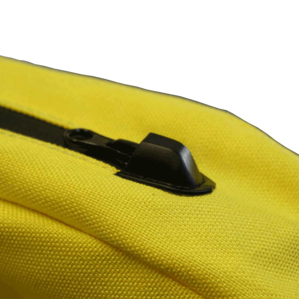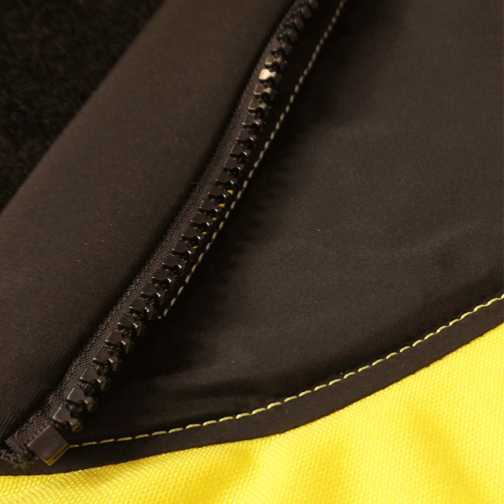 • Låsningen med dragkedja och elastiskt tyg under extremt kraftig kardborre.