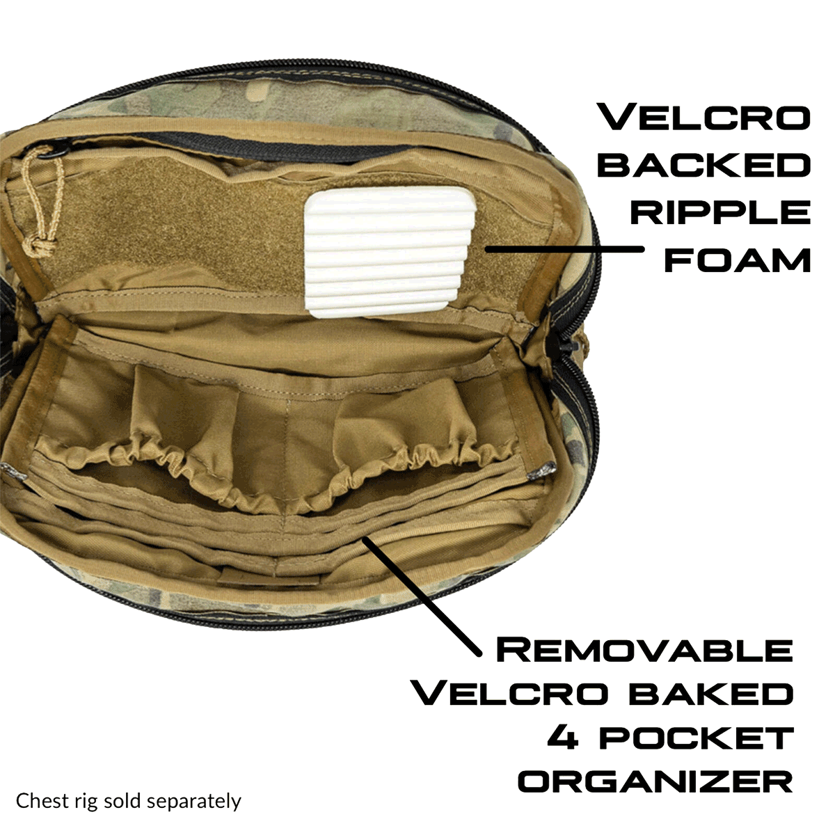 • Organiseringspanel, i bröstväskans huvudfack finns kardborrepanel som fäster denna panelen.