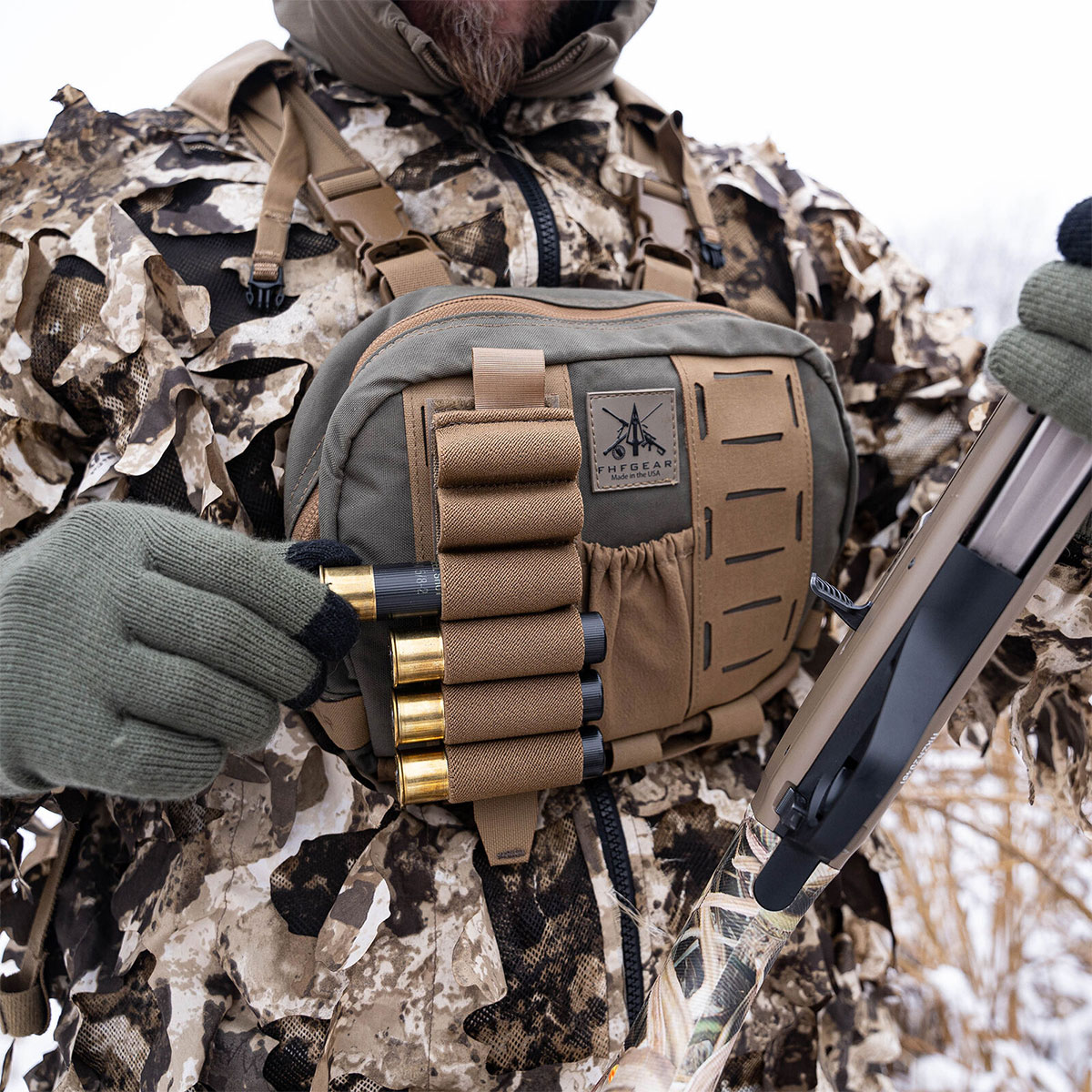 • Tillverkad i USA • Kardborre på baksidan • Passar för kaliber 12 och kaliber 20 • 76mm. vävd struktur • Patronhållare i elastiskt material. • Greppflick för att lösgöra kardbordeinfästning.