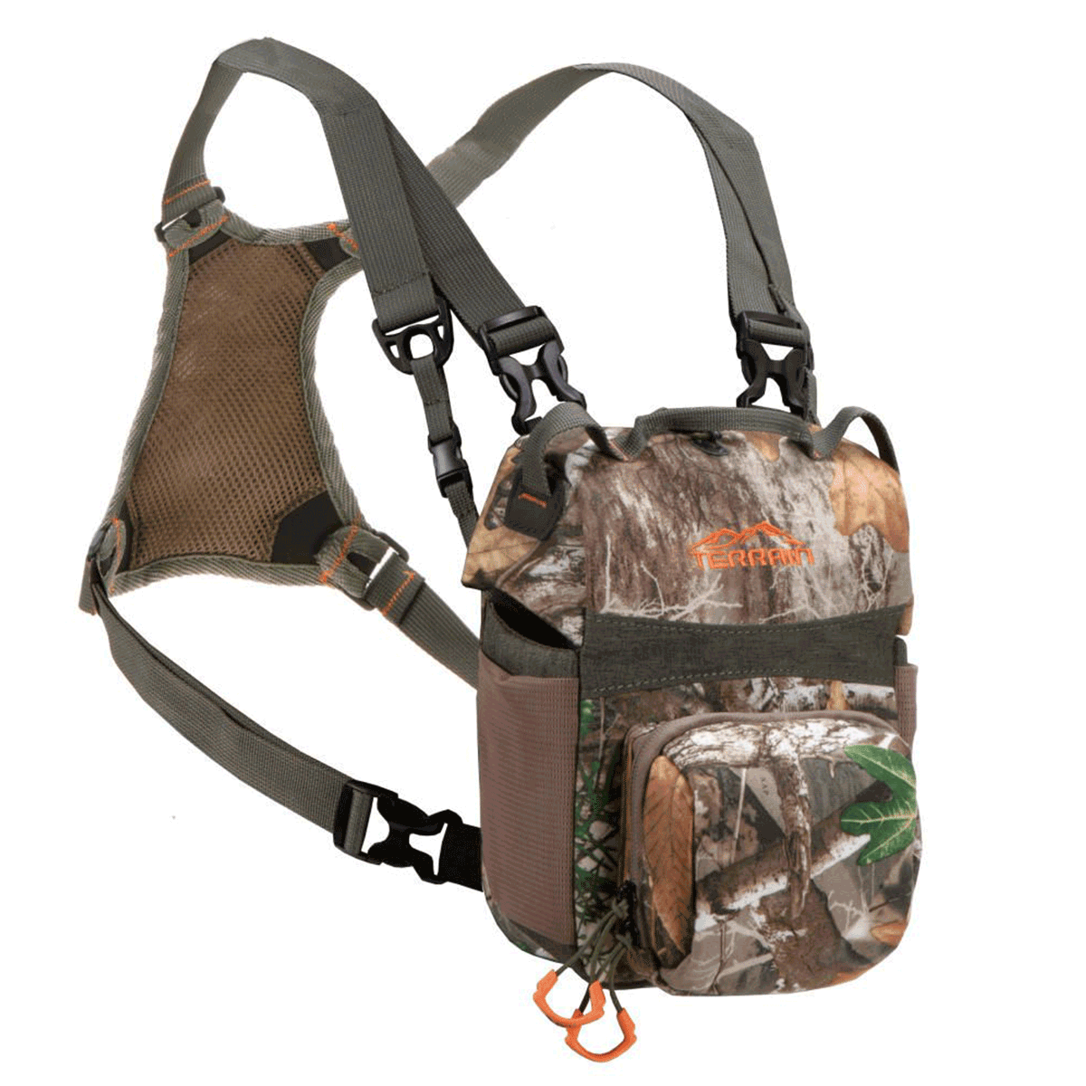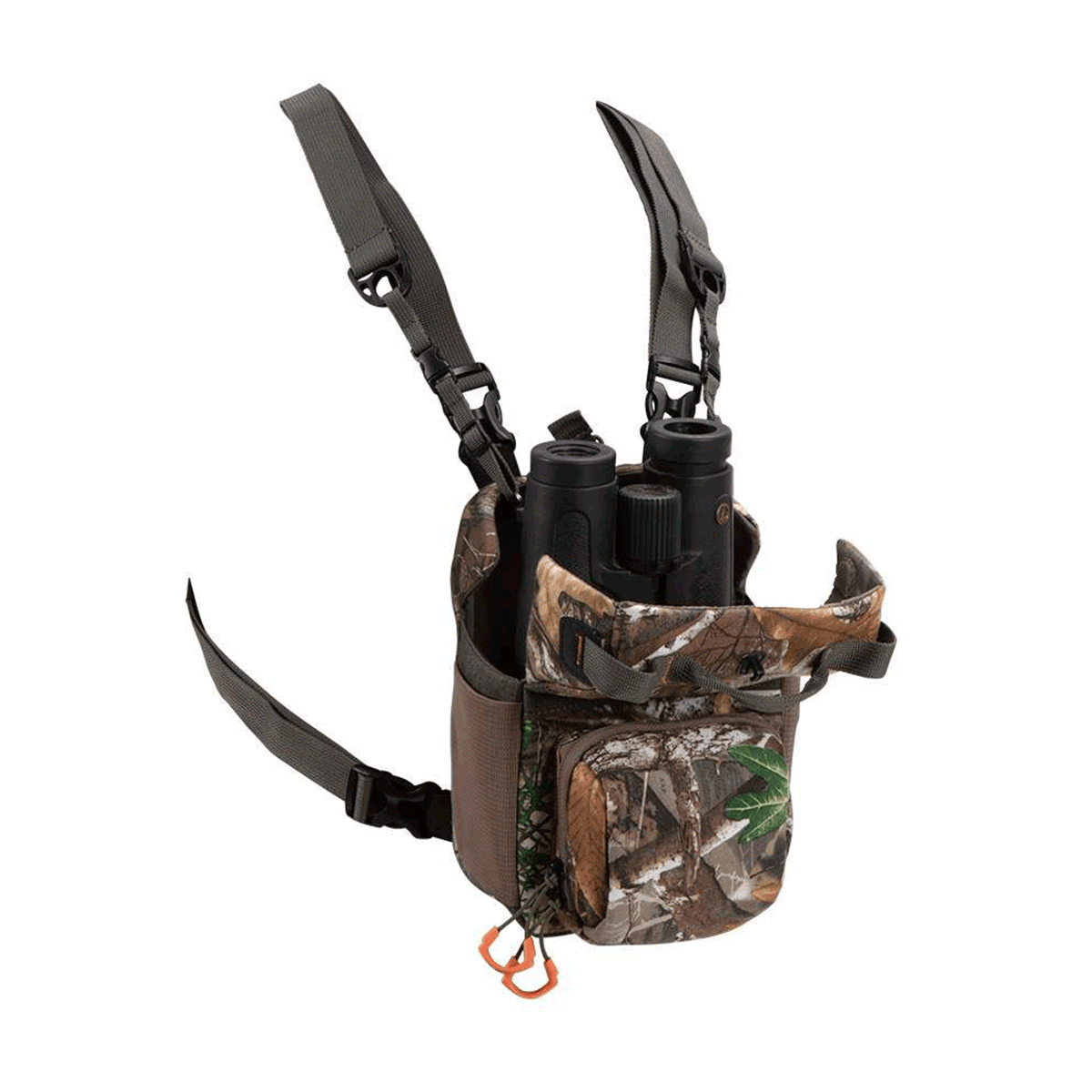 Allen Company Terrain™ Mesa Deluxe Bino Harness Realtree Edge®. Väskan är designad för snabb och enkel åtkomst av kikaren. Den har ett tyst magnetlås som gör att du kan ta fram eller stoppa ner din kikare ljudlöst. Den är tillverkad av mjukt, tyst tyg för att skydda din utrustning och har även en särskild ficka för avståndsmätare. Nätfickor samt en bakre ficka med dragkedja för extra tillbehör. Den fullt justerbara kikarsele säkerställer en bekväm passform och gör väskan idealisk för att användas hela dagen. Passar de flesta kikare upp till 10x42 i storlek.