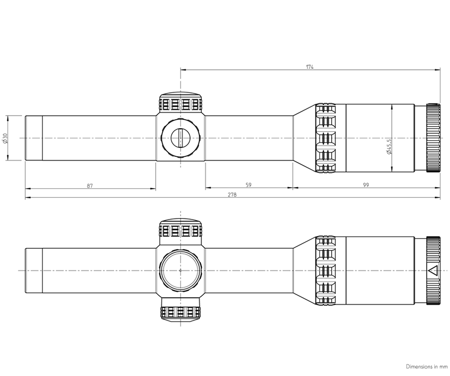 • Äkta 1x förstoring gör att siktet kan användas som rödpunkts sikte.