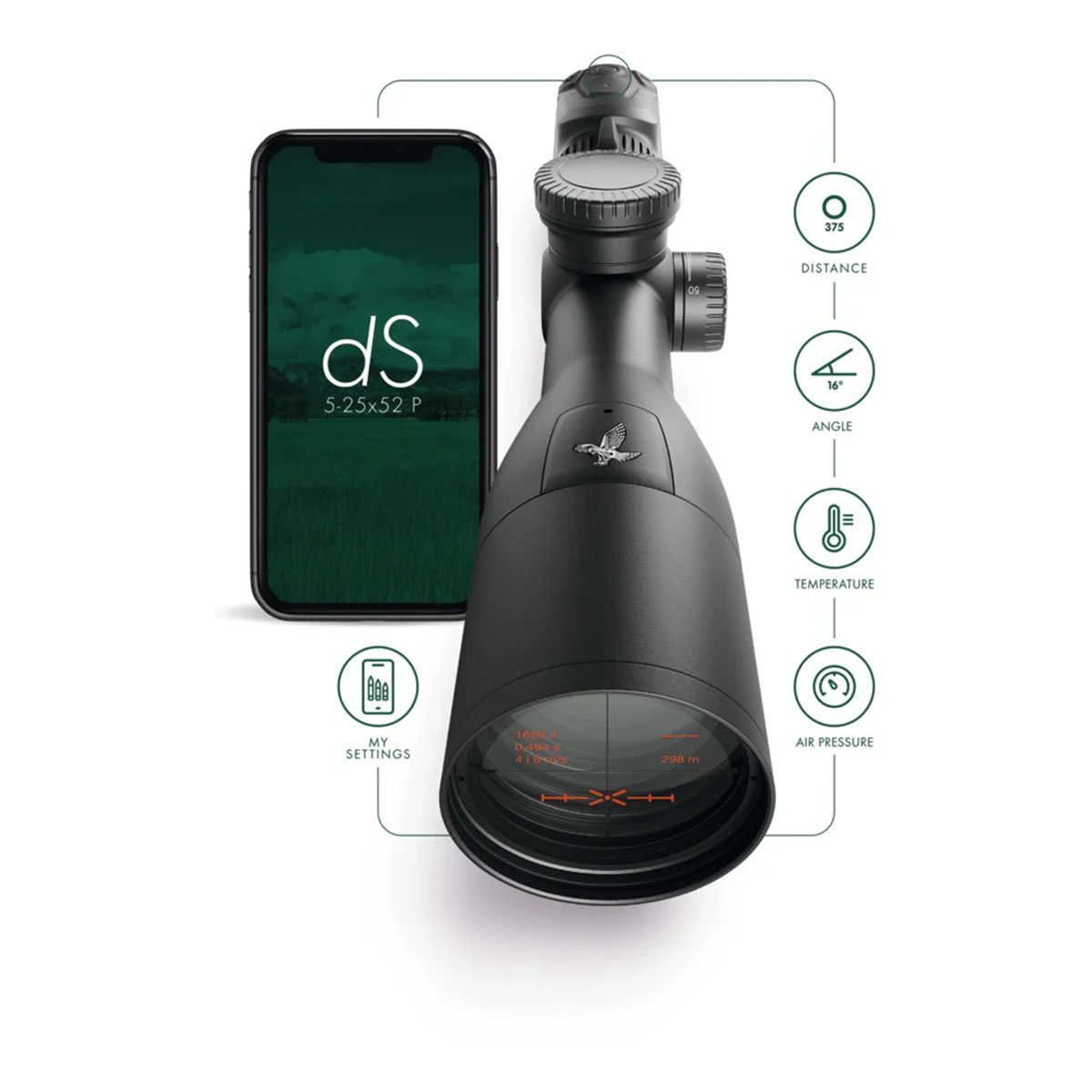 Målet med jakten är att kunna sikta och träffa målet med precision. Den smarta teknologin i Swarovski dS hjälper jägaren att uppnå just detta. Siktet levererar all information i displayen vilket gör att jägaren inte tappar koncentrationen. Siktet tar i beräkning all nödvändig information såsom lufttryck, temperatur, avstånd och vinkel vilket gör att inga manuella ändringar blir nödvändiga. Träffpunkten beräknas automatiskt utifrån den ballistiska datan ammunitionen och kalibern. Inmatningsdatan såsom kula, utgångshastighet m.m. matas in via en app.