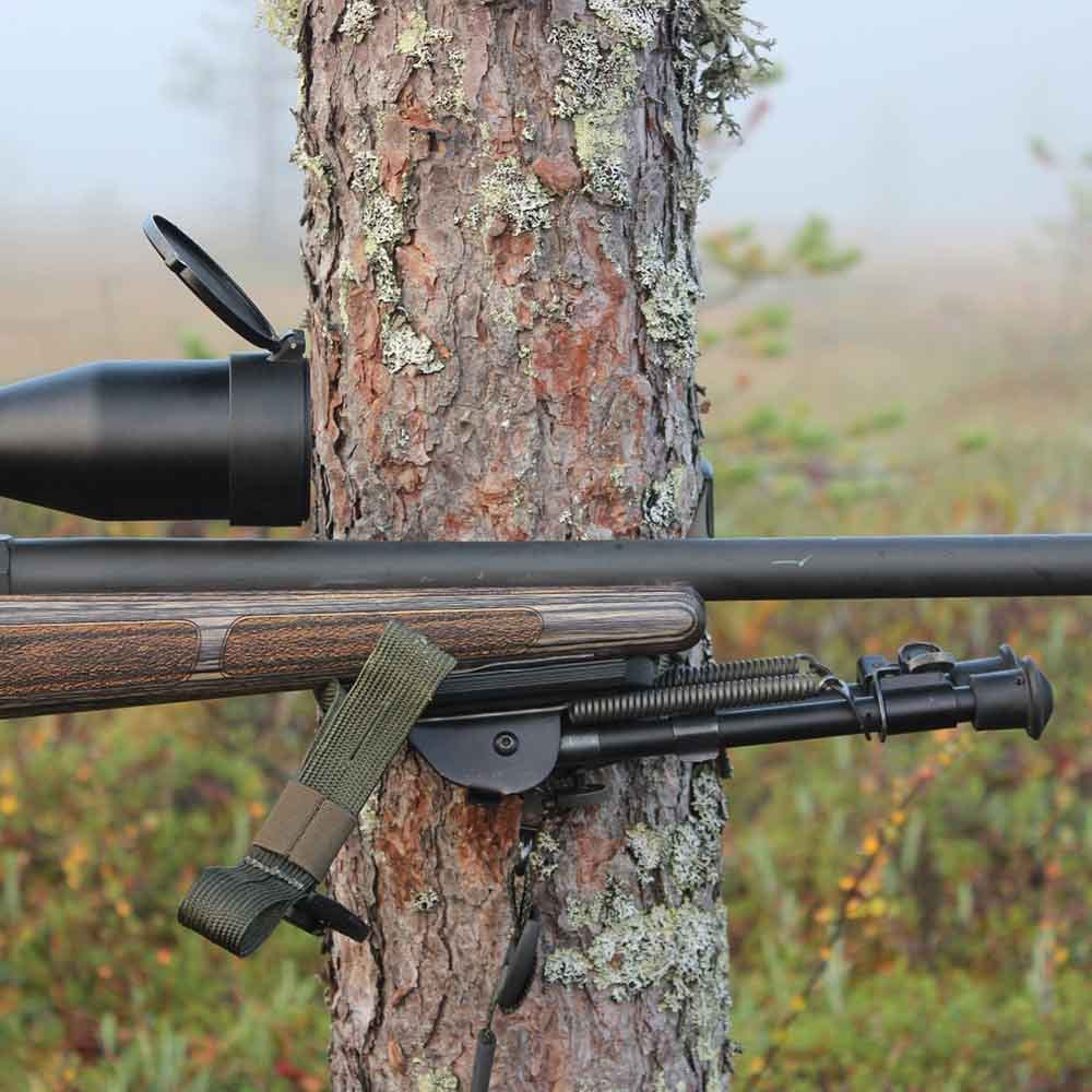 • Rem och adapterplatta som kan fästas runt träd och användas som skjutstöd.